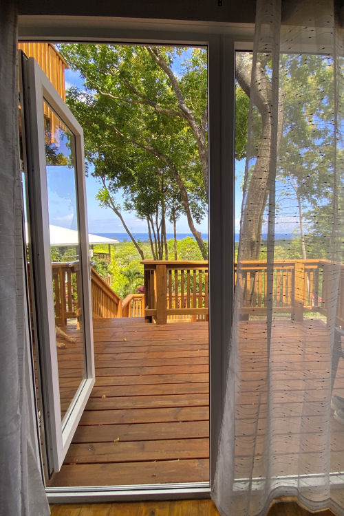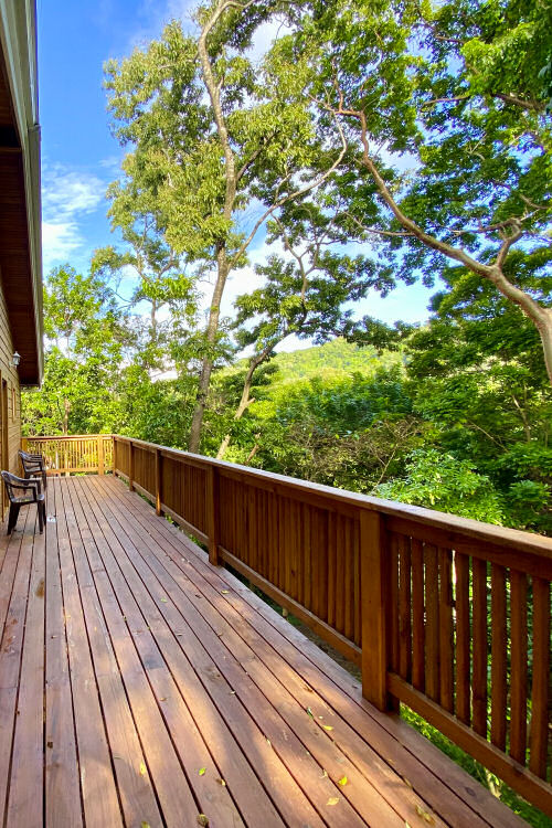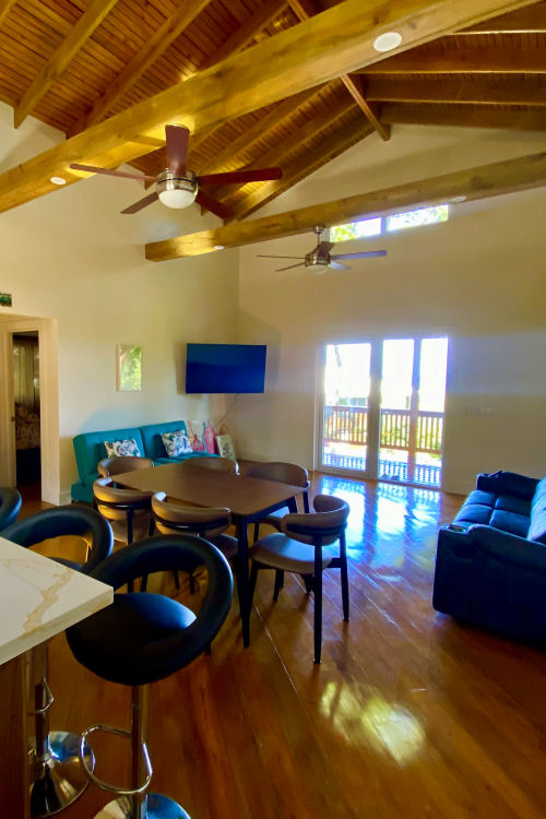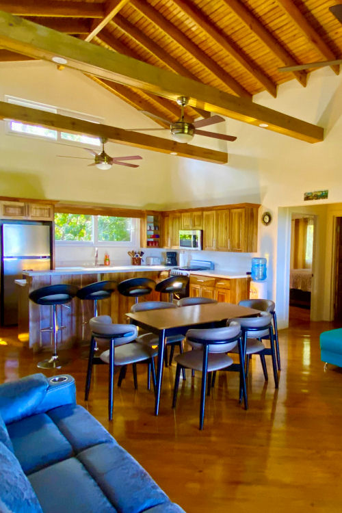The front of the house has a beautifull view of the North Side Carribbean Sea while the back deck enjoys a lush green view of the jungle.